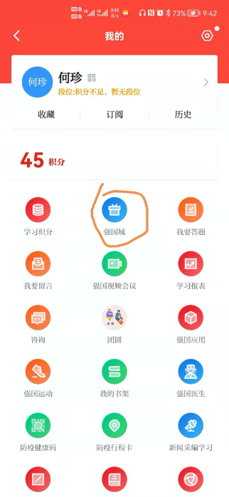 第三步:在APP中我的里點(diǎn)擊強(qiáng)國(guó)城