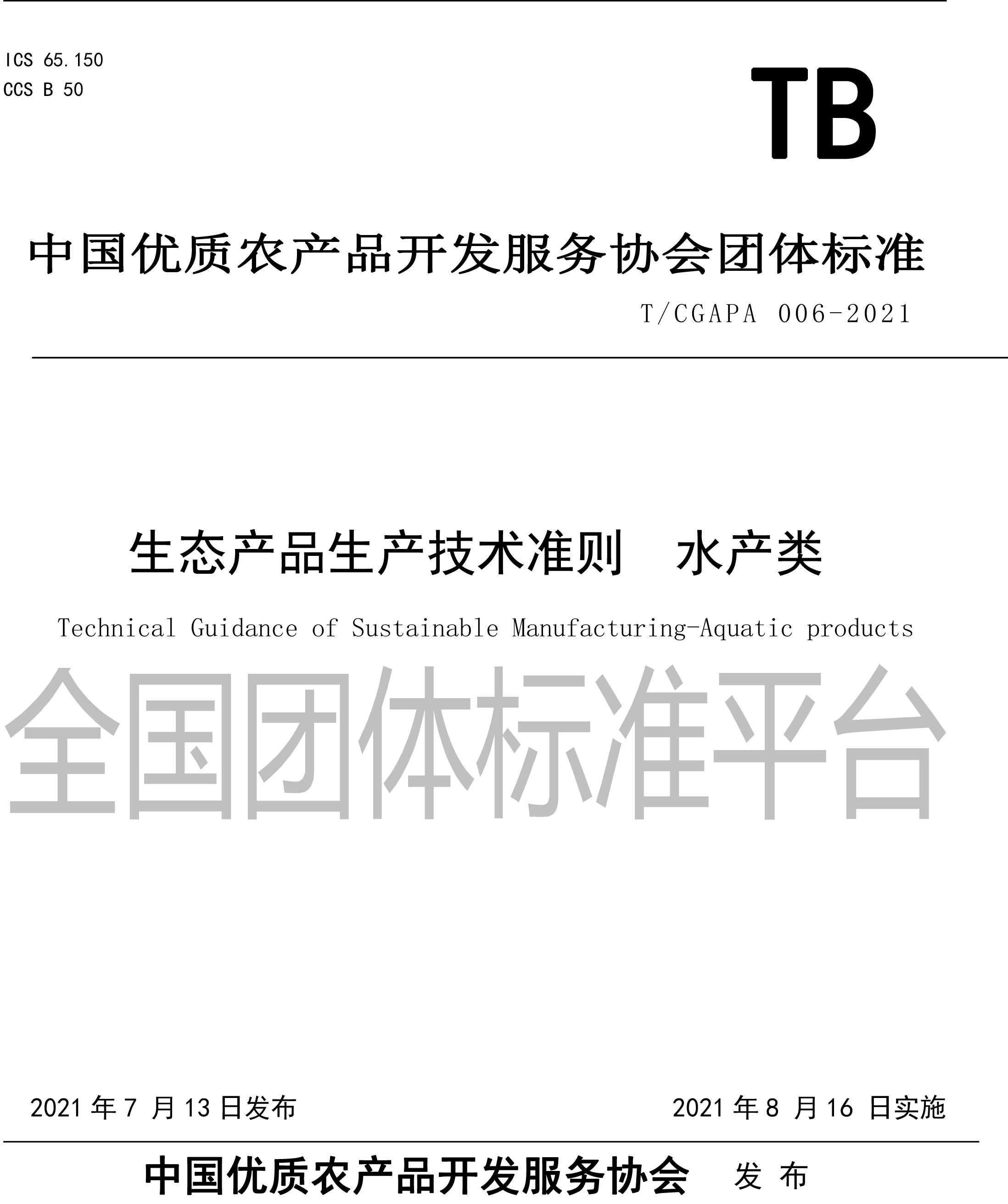 生態(tài)產(chǎn)品生產(chǎn)技術(shù)準(zhǔn)則 水產(chǎn)類(lèi)