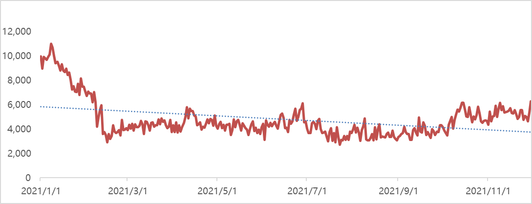 圖1 2021年1-11月豬肉電商市場熱度走勢?